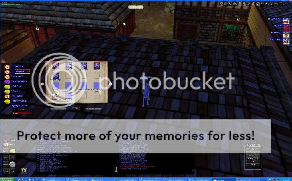 Spells with fire icon: "Fire" is targetted aoe rather than Single target. http://i440.photobucket.com/albums/q...01/healing.jpg Spells with healing Icon, Pack regen/chloro are GroupV2 and shifted differently than the others. http://i440.photobucket.com/albums/q...les01/boot.jpg Spells with Boot Icon top, wolf Icon bottom Treeform did not have wolf icon and is shifted to blank as well. Share Wolf Form (group v2) is shifted differently http://i440.photobucket.com/albums/q...es01/gates.jpg Self Gates are in the correct positioning, group gates are not, if that helps to give a point of reference. Pattern: It looks like the spell icons have been shifted in a consistent pattern out of their intended places. All spell icons of the same type are shifted to a new icon of the same type, the shift variance is determined by the spell's targetting behavior: Groupv2 are shifted further, Targetted aoe are shifted differently than Groupv2, Self Only are shifted differently than the others, etc, can't test if pbaoe are shifted differently than groupv2 with my current characters. |