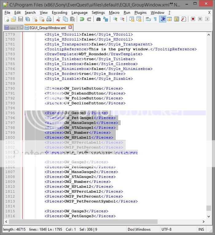 Group Window Mana / Stam Bars not registering? Real quick - I do programming on the side and have been editing the EQUI now for quite a while.. I cant seem to wrap my head around the fact that my coding is incorrect.. when it all checks out.. so the only thing im left to believe is that its on the server side and for whatever reason - you guys are not allowing this specific permission? http://i872.photobucket.com/albums/a...psmevts7po.jpg http://i872.photobucket.com/albums/a...psypnobtc5.jpg http://i872.photobucket.com/albums/a...ps7aesdzqe.jpg Can I get one of the developers to confirm this? |