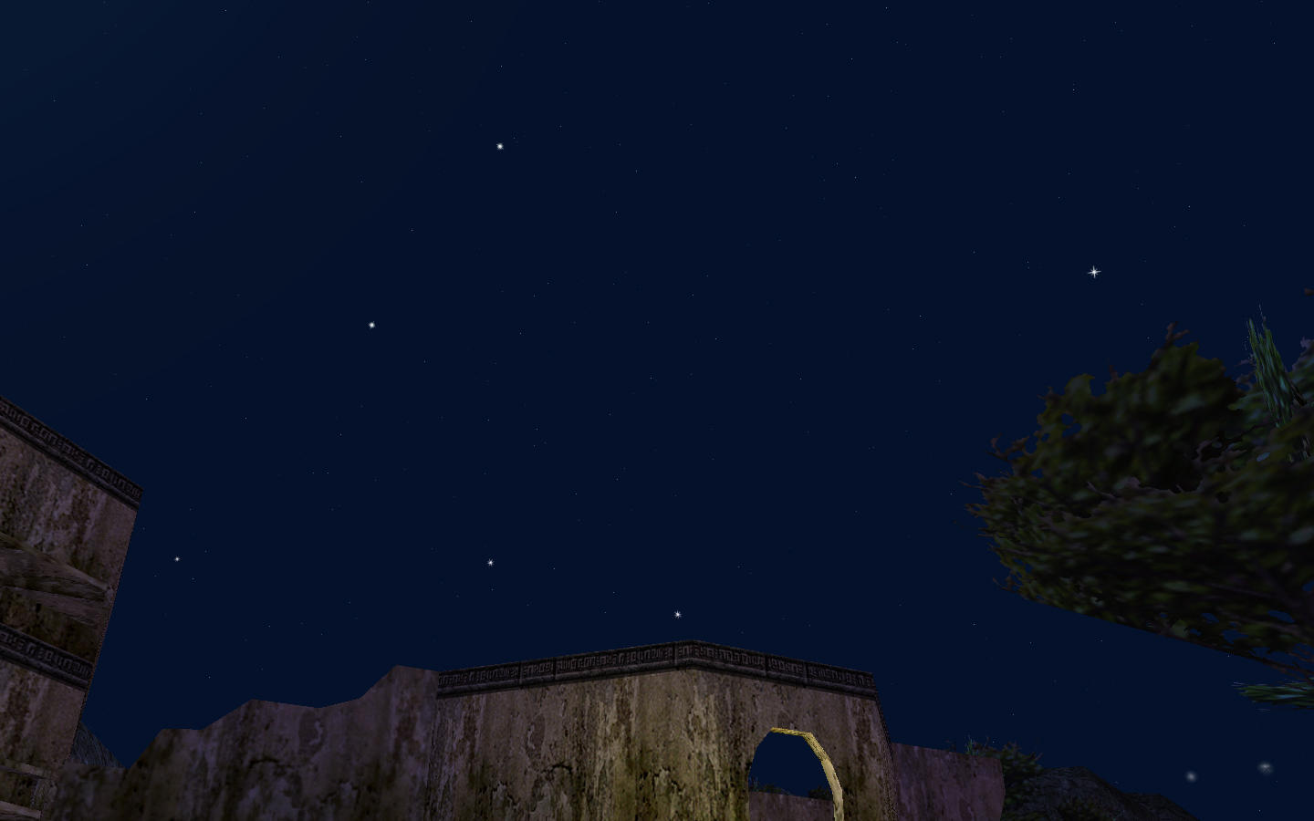 finally they did but I think by that time (or around there) they gave everyone 100% sense heading and eventually a compass. Now that I'm playing on p99 I actually need those stars when I'm playing a lower level character that hasn't skilled up on sense heading yet. of course in real life you're looking for the pole star as it's the only one that doesn't move around (much) I can't really tell if the stars in eq are moving or not. they don't seem to be but sometimes I go afk with a certain starfix in my view and come back and it's not there. maybe the cat jumped on my keyboard and moved me? anyway this one always seems to point east-ish http://divarin.net/t/starfix1.jpg http://divarin.net/t/starfix2.jpg |