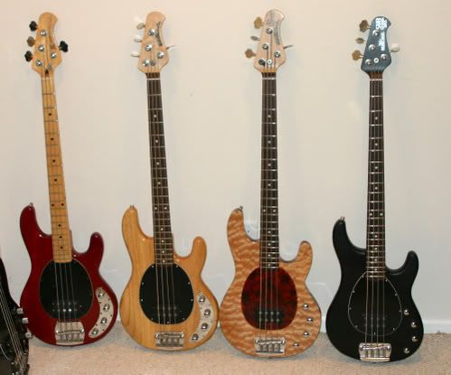 counting from the right, the 2nd bass is the kind i have.. 20th anniversary stingray with a rosewood fretboard.. only have a shitty little practice amp right now, but i've played through custom tube heads with all sorts of different cabs, including a 18" fender box with a sock stuffed in a hole in the speaker, which gave it a sick buzz at high gains.. crazy combo boxes, standard ampeg or whatever bullshit, all the way to a eden head and eden cabs which was my favorite at any volume.. I've used a G&L 5 string, a japanese fender jazz fretless on obsidian with a graphite body, a Kay stand up bass (ghetto), a beatle bass, several fender p-bass and p-bass clones, and a normal stingray.. and my favorite is what I have, and i will never sell or exchange my bass.. If I ever buy a serious amp setup again, it will be eden. |