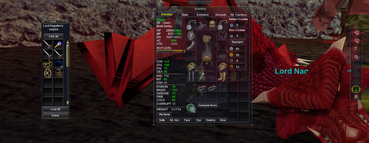 Dear diary, I want to fight over Naggy like Classic EQ. I am using the tools of the saints of EQEMU community to recreate the perfect simulation of classic mechanics to make this possible(higher dmg on melee for balancing but classic is unreal+the coding). Anyone who wishes to participate logs on with a full set of gear that makes you more than adequate to compete.