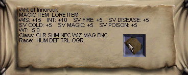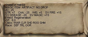 Pre-Kunark http://zam.zamimg.com/images/4/a/4a9...bab7c4b7cb.png P99: No http://zam.zamimg.com/images/a/0/a0d...e638b0399a.png P99: Yes http://zam.zamimg.com/images/9/f/9f0...2535e325f7.png P99: No http://zam.zamimg.com/images/a/c/ac8...f720789695.png P99: Yes http://zam.zamimg.com/images/2/f/2f6...276ac5d6ba.png P99: No http://zam.zamimg.com/images/2/9/29c...e6f82d0c93.png P99: No http://zam.zamimg.com/images/8/0/80a...b47fc70026.png P99: No http://zam.zamimg.com/images/4/0/40f...59dd240615.png P99: Yes http://zam.zamimg.com/images/f/3/f35...219bbe021e.png P99: Yes Breastplate of Afflation MAGIC ITEM LORE ITEM Slot: CHEST AC: 27 STR: +5 CHA: +15 WT: 9.0 Size: LARGE Class: PAL Race: ALL P99: No Can o` Whoop Ass MAGIC ITEM NO TRADE EXPENDABLE Charges: 1 Effect: Can o' Whoop Ass (Any Slot, Casting Time: Instant) as Level 50 WT: 0.1 Size: TINY Class: ALL Race: ALL P99: Yes Kunark http://zam.zamimg.com/images/6/3/630...16c5bfc31e.png P99: No |