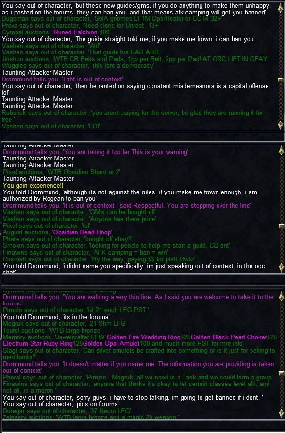 2. The punishment for AFK Leveling, according to the rules in print, are Frowned upon and booted to character select. No where does it state a maximum penalty of "banishment" 3. Back in 1999, AFK Leveling was around. The 75% penalty wasn't implemented until Luclin I believe. Could've been Velious. |